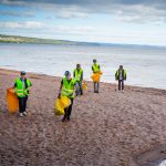 Strandstädande ungdomar fokuserar på den hårt skräpdrabbade västkusten